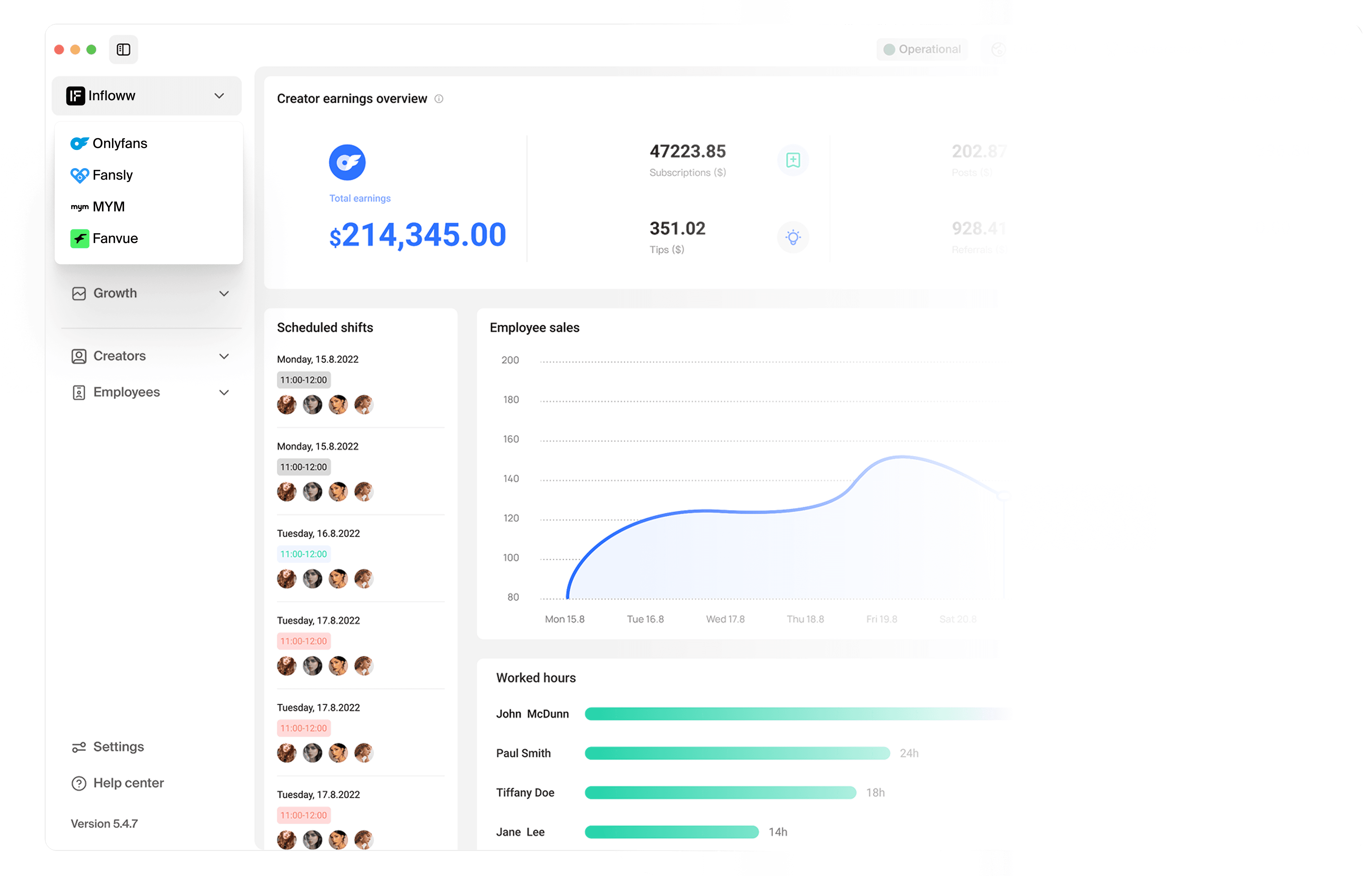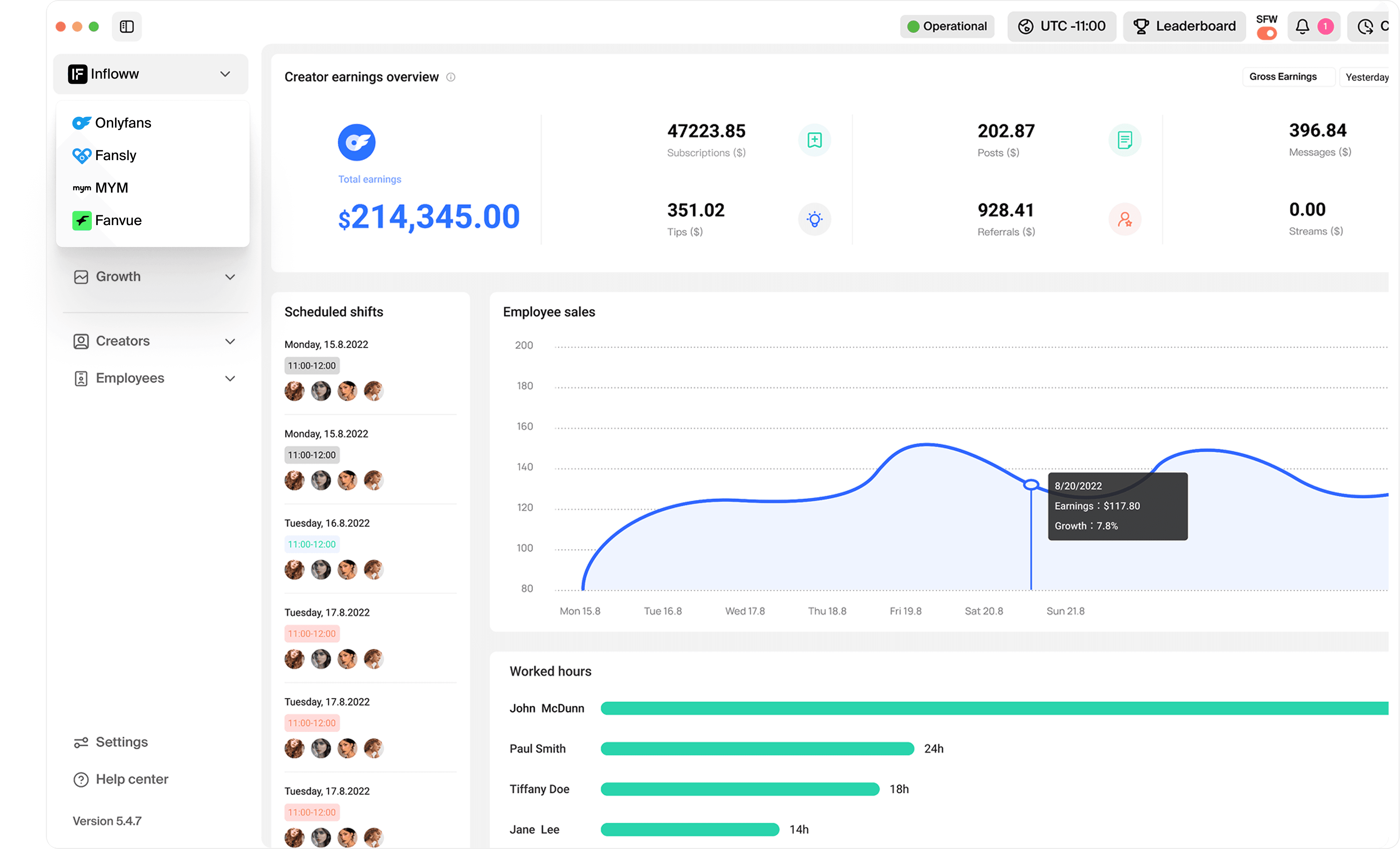 Track performance with Creator, Employee, and Fan Reports. Use the Infloww API to export revenue data and automate your workflows (in Beta).